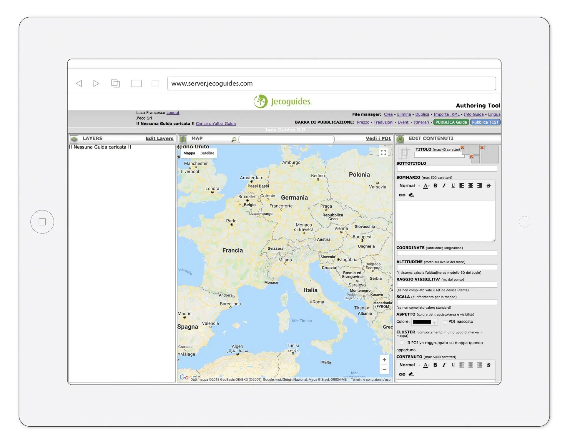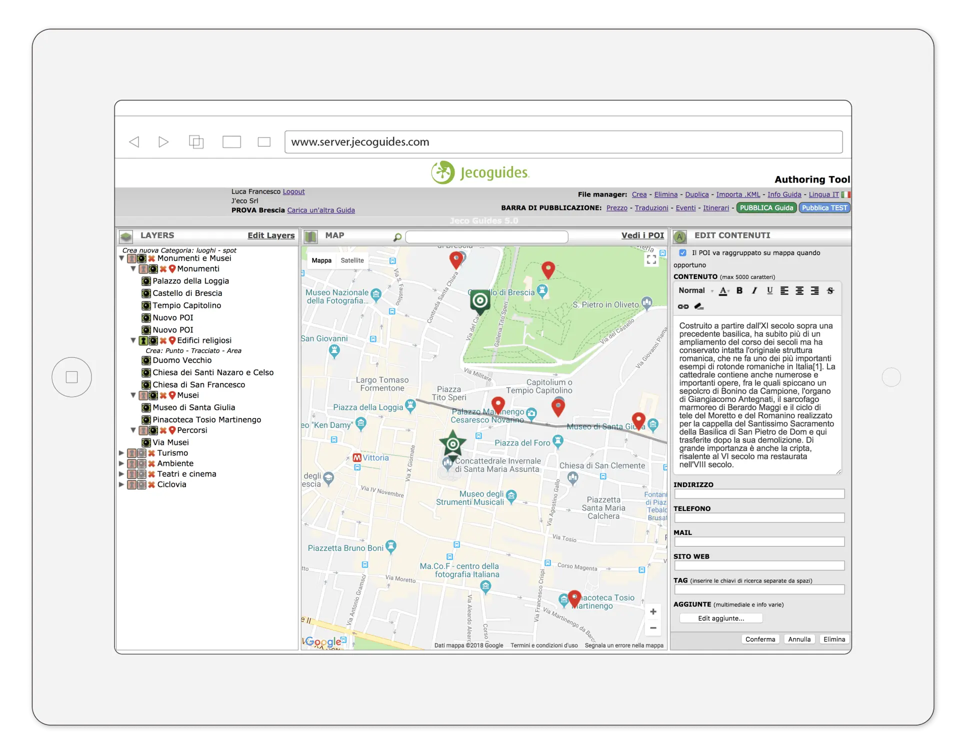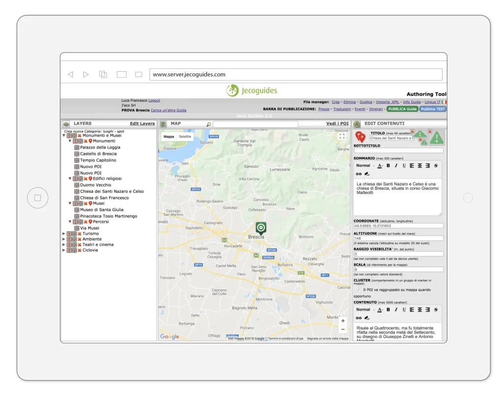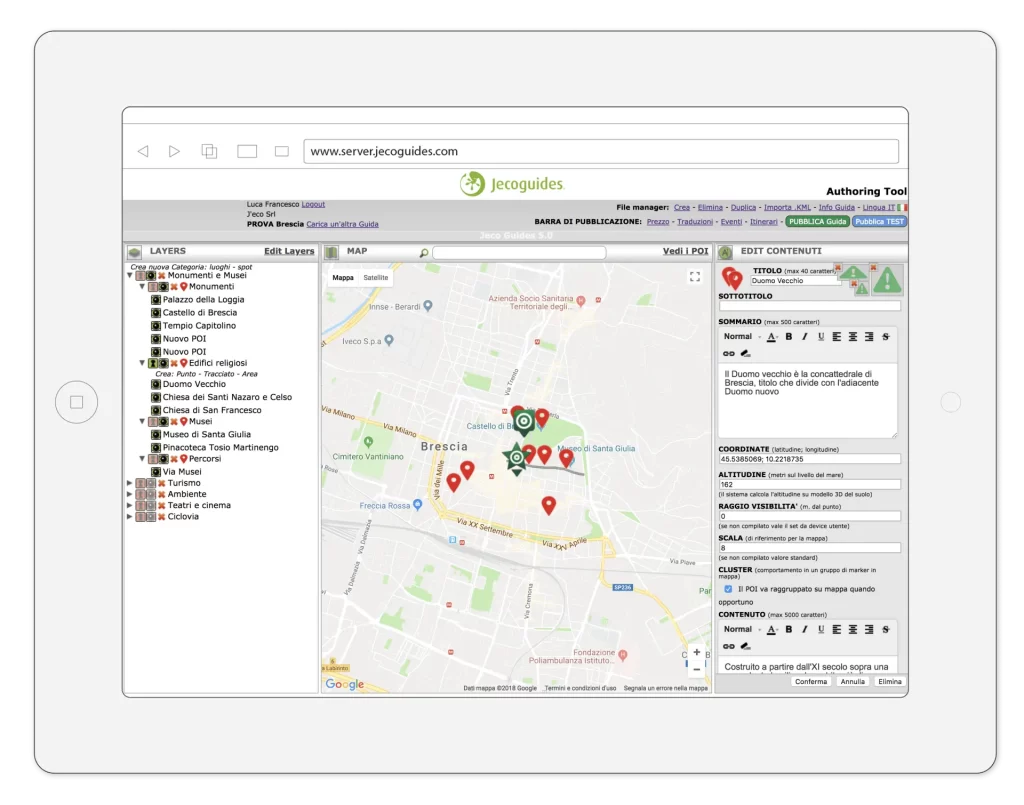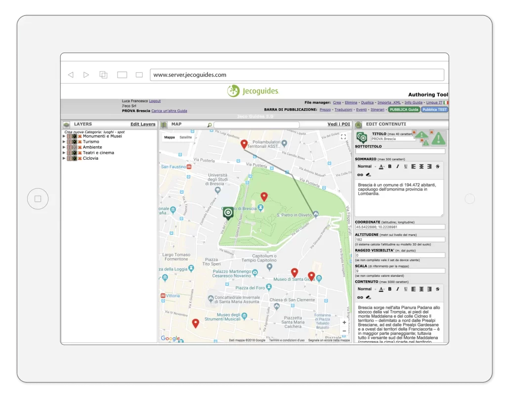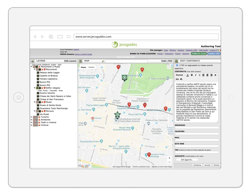 Nella sezione “Layers” organizzi tematicamente i contenuti georeferenziati della tua Guida.